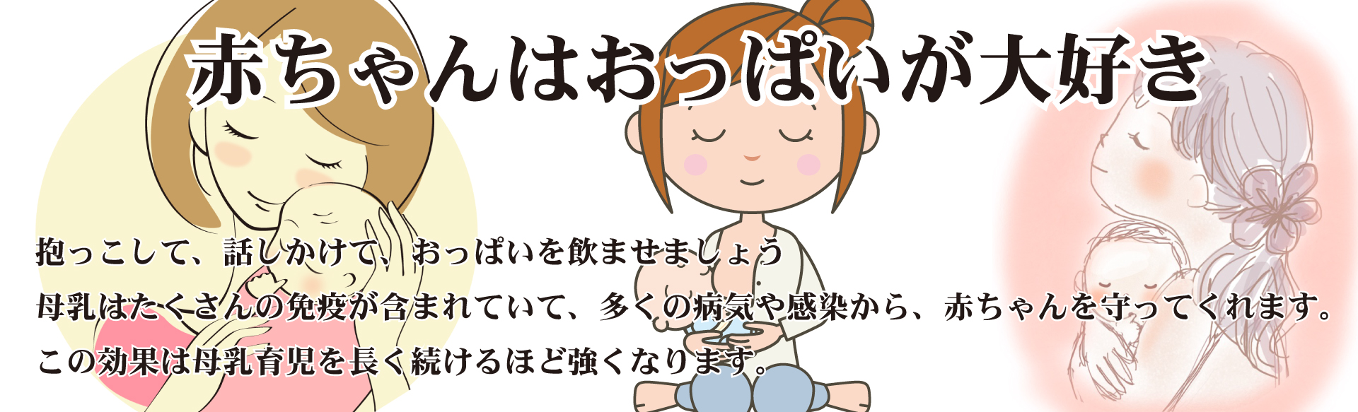 母乳外来 赤ちゃんはお母さんに抱っこされ、十分おっぱいを吸うことでお母さんの温もりや匂い、そして心臓の鼓動も感じ安心感を深めていきます。 母乳育児を出来るだけ長く続けていけるようお手伝いいたします。 おっぱいに腫れやしこりがある、おっぱいが痛い、熱がある、乳頭に白斑ができたなど、心配なことがあれば電話にてご相談ください。 |